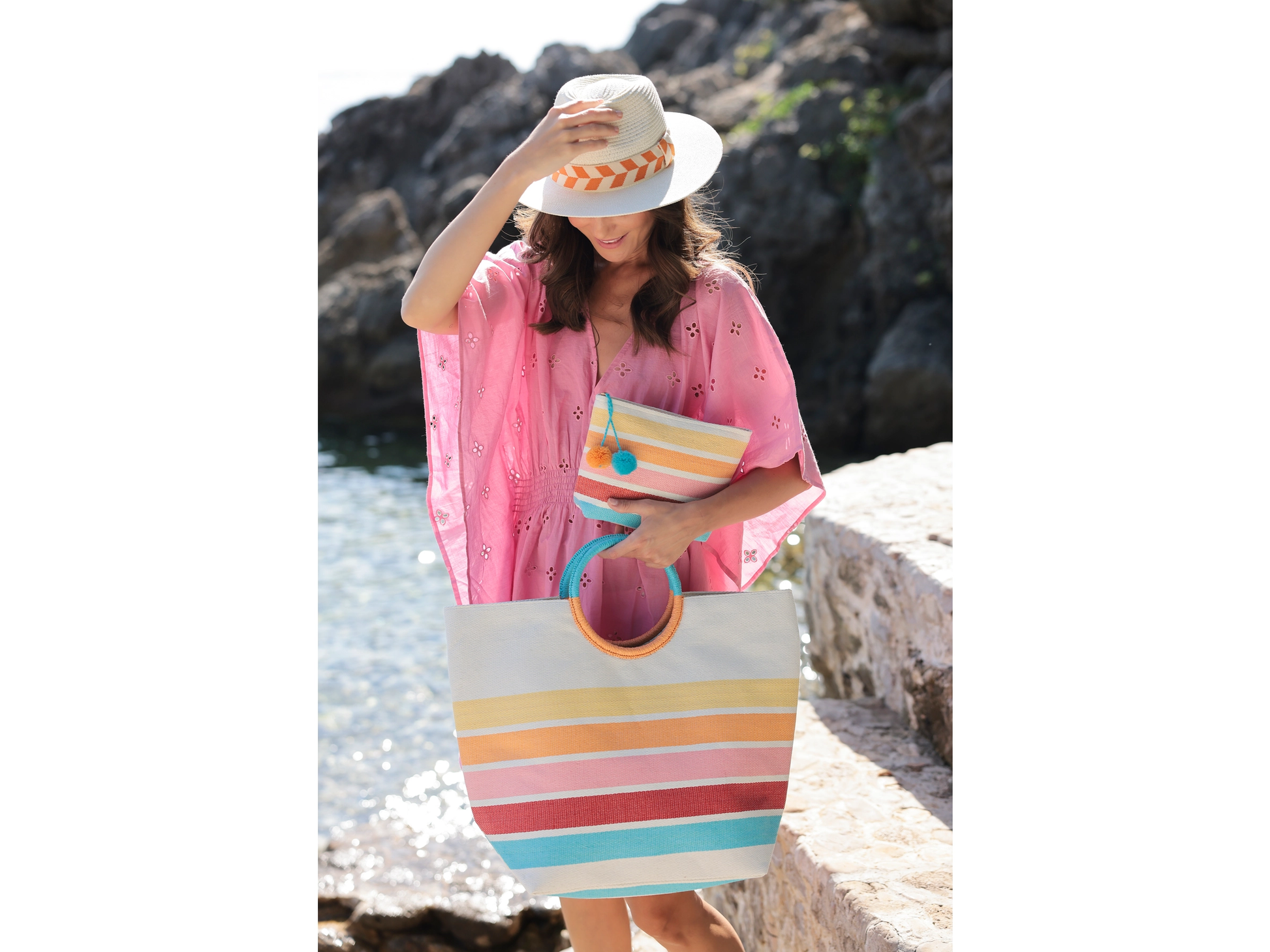 Keep the sunshine out of your eyes this summer with the Aramis Hat. Made from ivory paper straw with an orange patterned stripe, this chic beach hat is the perfect match to any summer outfit. Adjustable; paper straw. Natural hat with orange banded trim.