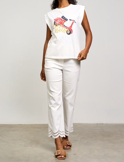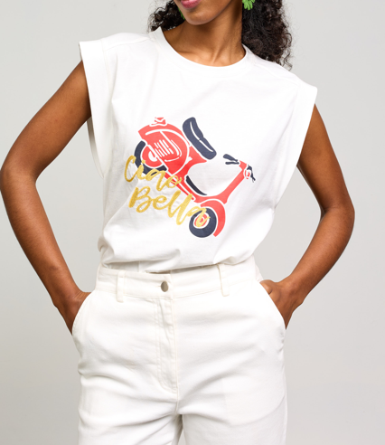 Ciao Bella! We love the moped graphic and embroidered wording. A lovely nod to the Year of the Jubilee.