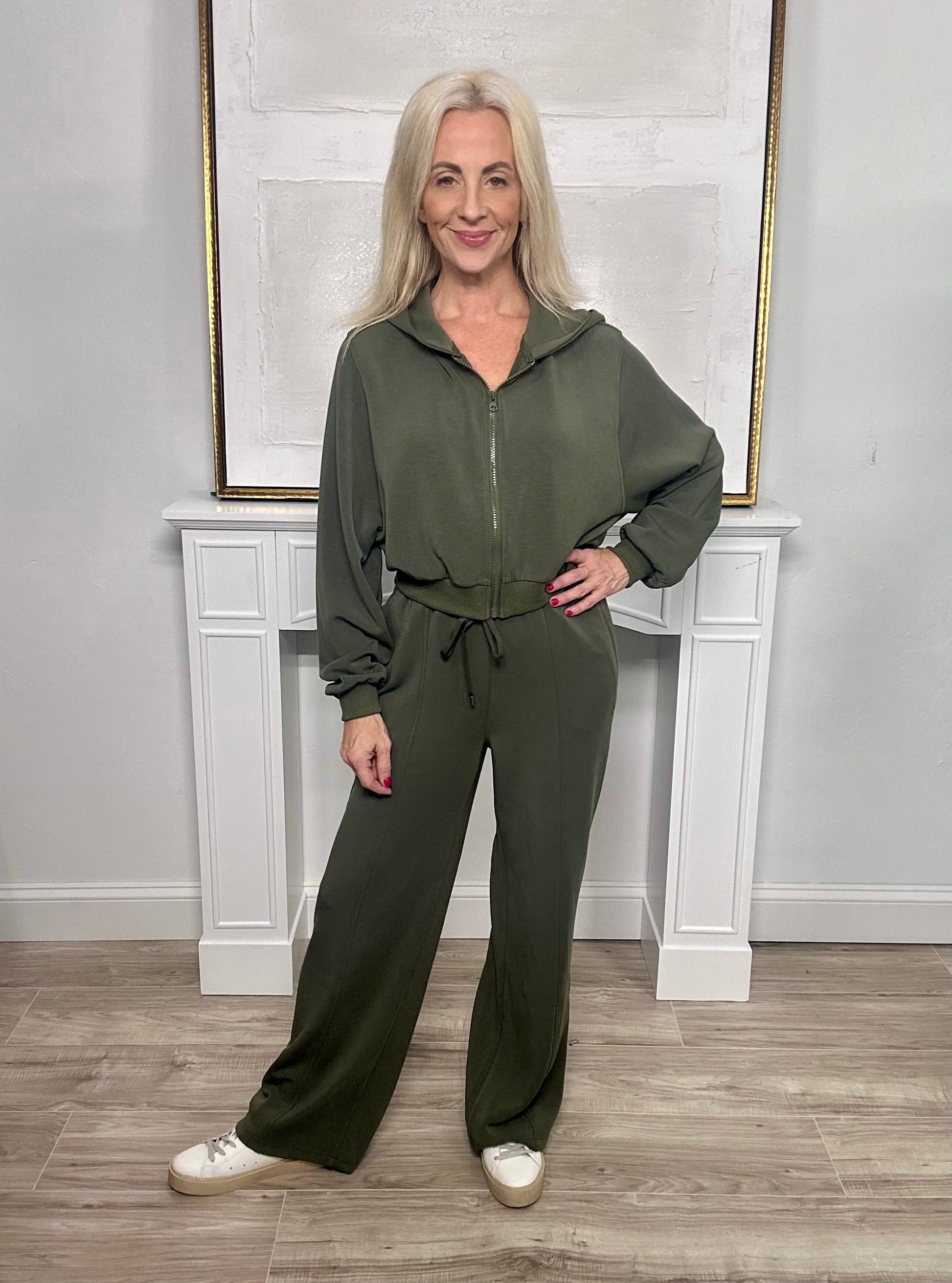 The Blanche pants are a super soft modal, in a pull on style with elastic waist and drawstring. They also have pockets and a great front pintuck detail. Match with the two top options.