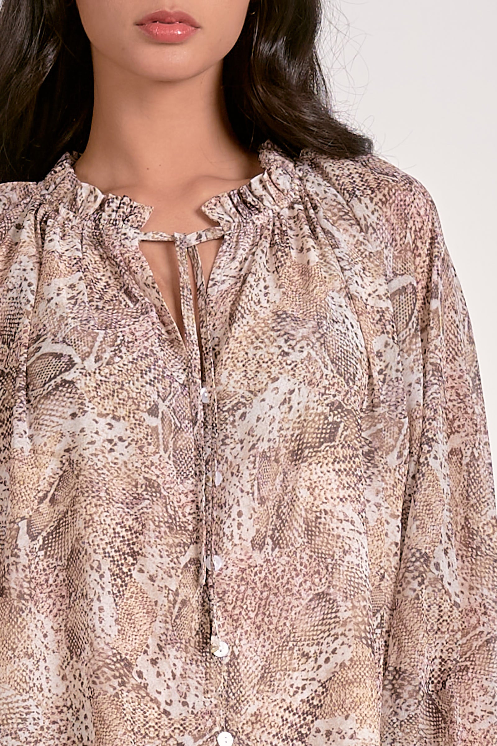 Elevate your fall wardrobe with the Cassidy Top, a flowy long sleeve blouse crafted in our exclusive Natural Snake print. Lightweight and breezy with a flattering drape, it’s made for effortless layering. Style it with denim and ankle boots for everyday polish or pair it with leather or suede pants for a full head-to-toe look.