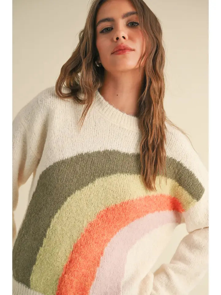 The softest rainbow sweater. The colors are perfect for fall and go with all of your denim.