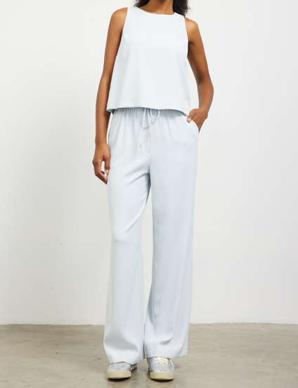 A boxy style sleeveless top made from our favorite recycled fabric. Keyhole closure in the back. The perfect match to the Colette pants and the Brianna shorts.