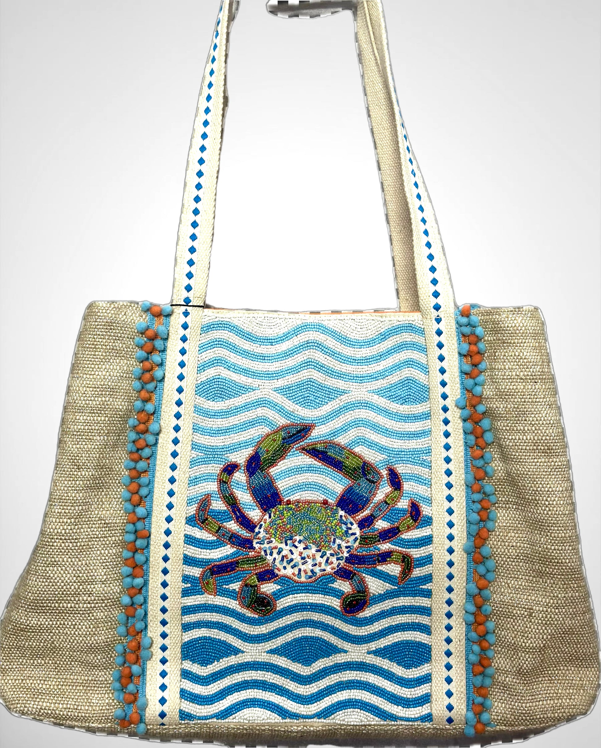 Pack your beach vibes and hit the road with the Crabby Waves Tote! Crafted from a comfy blend of 60% cotton and 40% polyester, this tote features a fun pompom lace detailing that adds a playful twist to any outfit. With two slip pockets and one zip pocket, keeping your essentials organized has never looked this good. And with a detachable shoulder strap, you can carry it your way. Whether you're hitting the beach or running errands, this tote brings the good vibes!