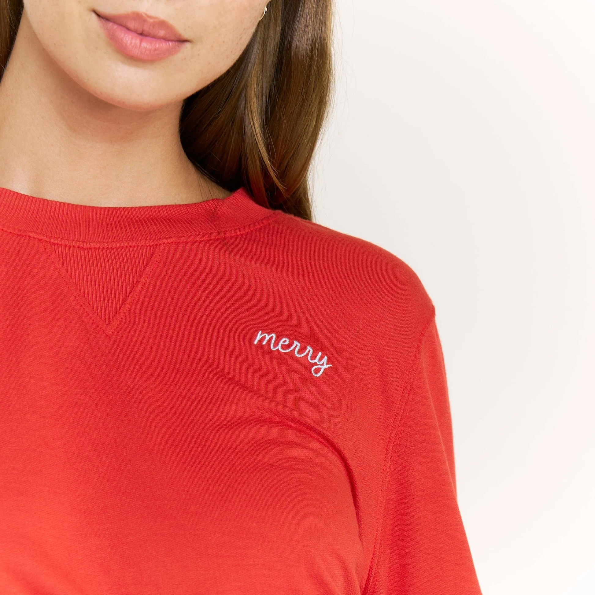 A long sleeve crewneck top paired with a boxer short in a lightweight, french terry fabric.