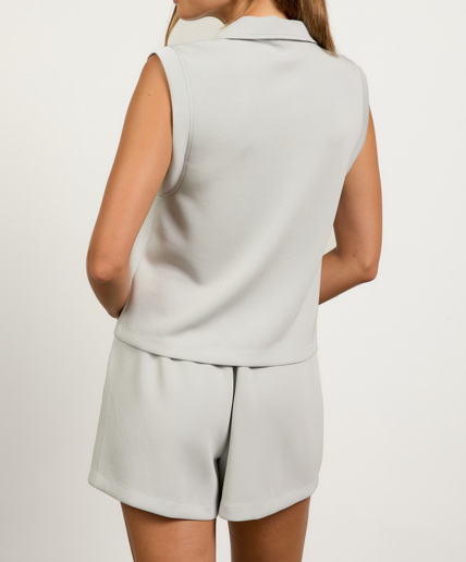 A super soft modal sleeveless top with a collar and zip. It is so cute paired with the matching shorts and pants. Perfect for a day out on the town, travel or lunch with the girls. So comfy, stylish and cute. Comes in multiple colors.