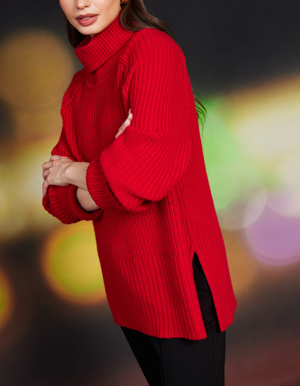 This new turtleneck sweater will have you ready for Fall and Holiday. It is a great weight and shape, with a slit at the side. This will be a go to for the season. Comes in multiple colors. Runs true to size.