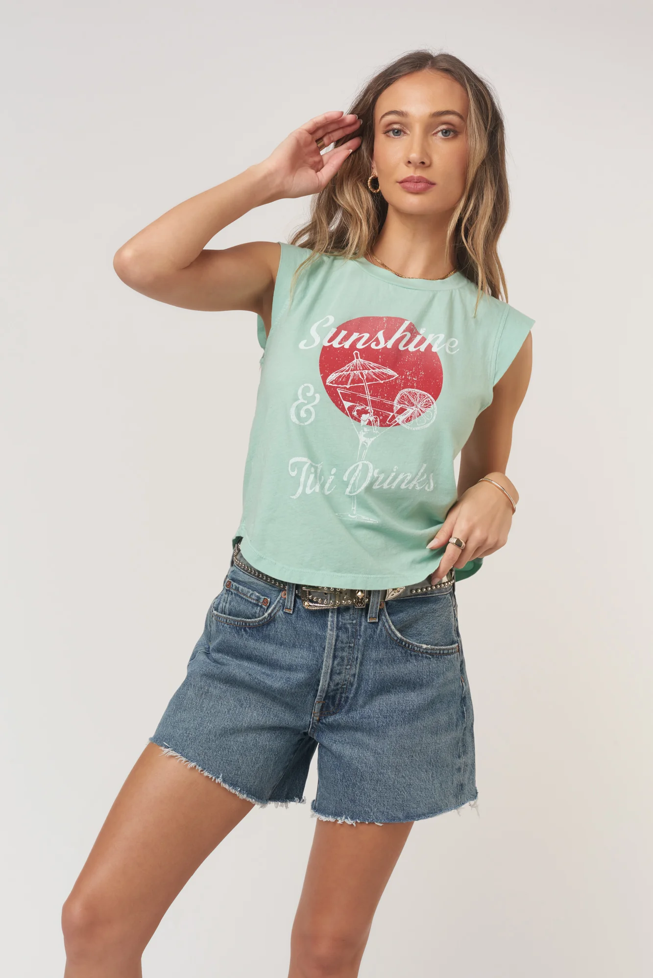 The Sunshine & Tiki Drinks Muscle Tank is your go-to for sunny days and anything-but-average outfits. With a bold tropical cocktail graphic and soft 100% cotton feel, it delivers that instant vacation state of mind - even if you're just hitting the coffee shop.